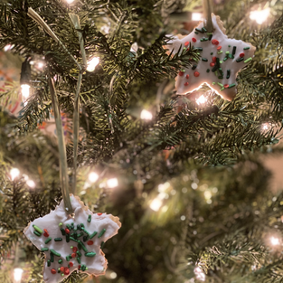 Note: If you want to hang these on a cookie tree, use a straw to punch out a hole in the dough before baking them (see photos below).